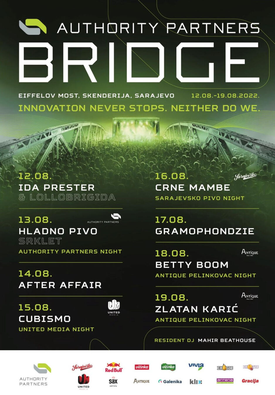Ni ove godine neće nedostajati zabave na Authority Partners Bridgeu u Sarajevu. Očekuje vas bogat muzički program tokom trajanja Sarajevo Film Festivala.