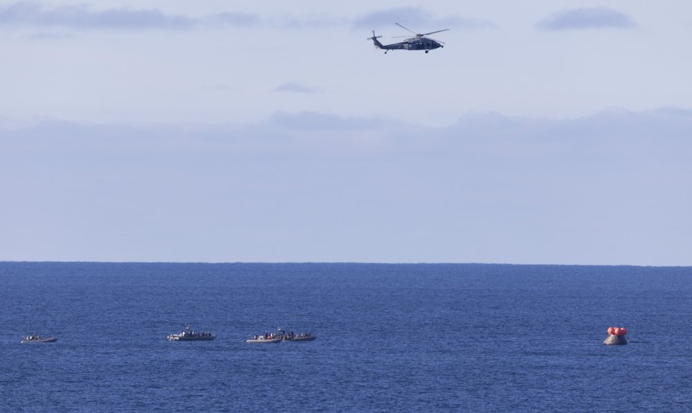 Zbog morskih struja, postavljanje opreme bilo je privremeno otežano, no NASA je naglasila da nema žurbe te da je sigurnost posade apsolutni prioritet. U kapsulu su potom ušli članovi spasilačkog tima kako bi pojedinačno pregledali svakog astronauta prije izlaska. Nakon toga, posada je prebačena helikopterima na brod USS John P. Murtha.